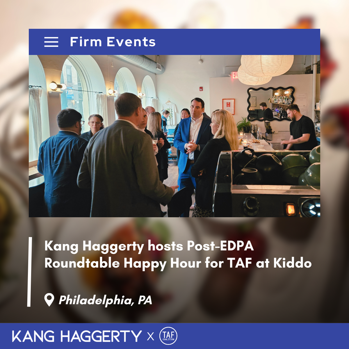 Kang Haggerty was pleased to host a post‑Eastern District of Pennsylvania Roundtable Happy Hour for TAF – The Anti‑Fraud Coalition last night at Kiddo in Philadelphia. The gathering brought together whistleblower practitioners, government colleagues, and members of the broader anti‑fraud community to continue the conversations sparked during the EDPA roundtable.